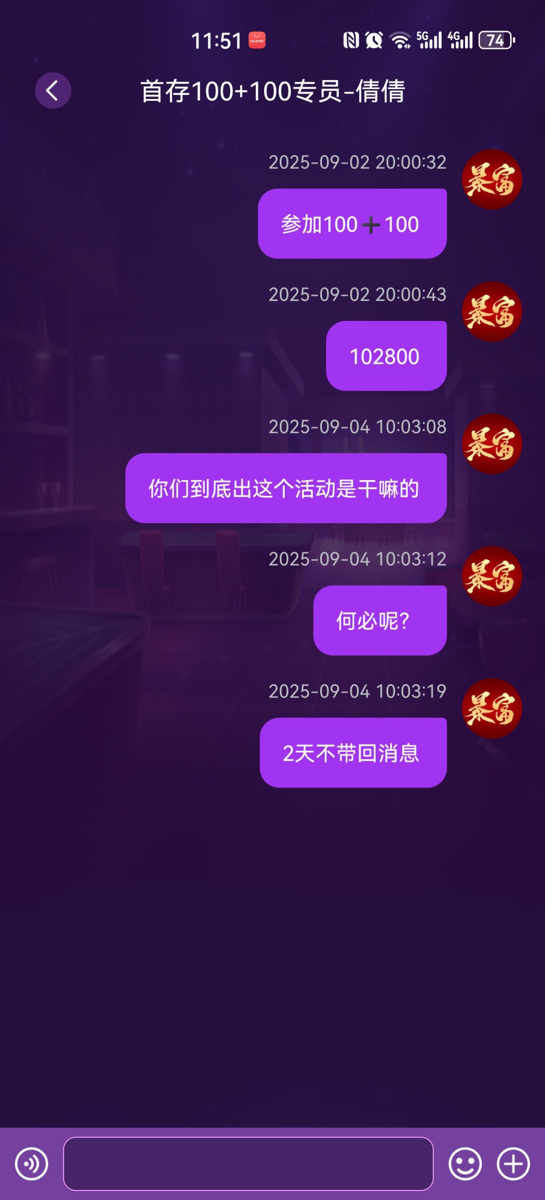 qwe1314520 充值申请1+1一个半小时了都没人回复的