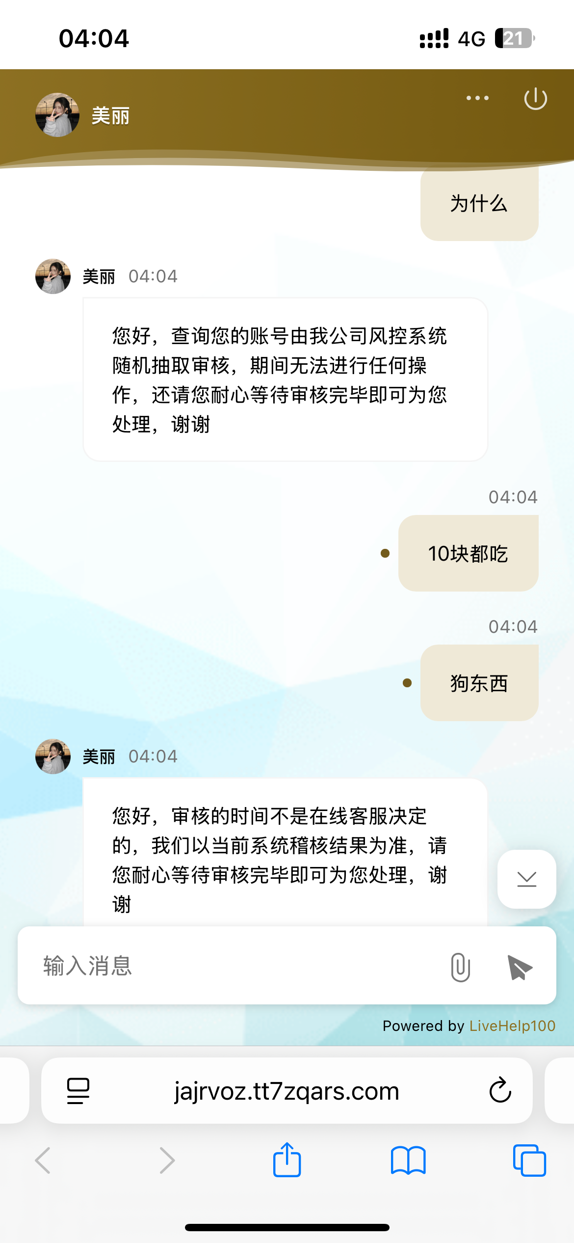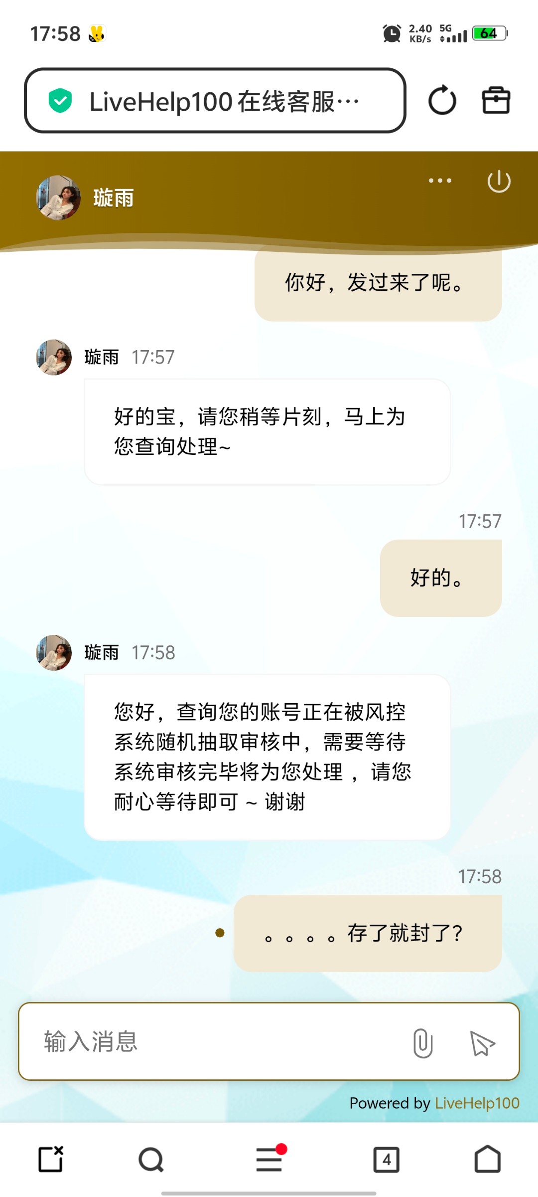 说是被系统检测封控了,问啥时候解封也不说